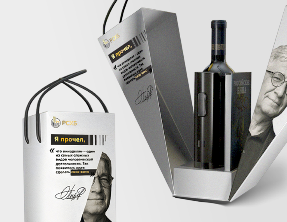Так родился комплексный проект. Винный эксперт и сомелье Артур Саркисян выпустил свой авторский гид «Российские вина» в коллаборации с РСХБ и посоветовал нам лучших виноделов страны. Вместе с ними мы создали брендированную коллекцию и дополнили это упаковкой в собственном дизайне. А после разослали важнейшим клиентам этот набор с гидом и вином. И все это за три недели.